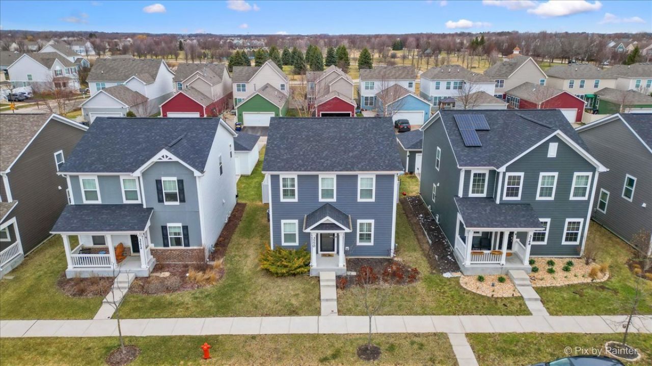 Welcome to 3770 Westbury in Elgin - a beautifully maintained Landers floorplan built in 2021 and thoughtfully upgraded by the current owners. This newer construction home offers modern finishes, functional design, and a rare two-car detached rear-load garage that creates exceptional curb appeal with no front-facing garage, just a charming two-story exterior and covered entry. Step inside to an open-concept layout designed for both entertaining and everyday living. The versatile front dining room can easily serve as a formal entertaining space, home office, or playroom. A convenient coat closet and updated powder room featuring a new toilet, LED mirror, and upgraded lighting add style and function to the main level. The expansive kitchen is the heart of the home, centered around a large island with seating and featuring upgraded high-efficiency black stainless steel appliances, quartz countertops & tile backsplash, 42 painted cabinetry with soft-close drawers, roll-out shelving & more. The kitchen flows seamlessly into the spacious family room enhanced with added recessed can lighting and first-floor plank flooring throughout. The mudroom and laundry area are conveniently located off the rear entrance and include a newer washer and dryer for true move-in-ready convenience. Upstairs, the private owner's suite spans the entire rear of the home and features a large walk-in closet and a bright en-suite bath with dual sinks, a 5-foot tiled walk-in shower, linen closet, and natural light. Two additional bedrooms and a full hall bath complete the second floor, with new ceiling fans installed in all bedrooms for added comfort. Enjoy the fully fenced backyard with privacy fence and added lighting, ideal for relaxing evenings or entertaining guests. The full basement offers endless potential for future finishing, whether you envision a home theater, gym, playroom, or additional bedroom space. Located in highly regarded Burlington School District 301 and situated in a neighborhood with no drive-through traffic, this home offers both privacy and convenience.