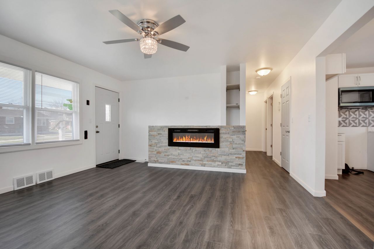 Hugged your house today? You'll feel like doing it every day when you arrive home to this easy-to-love, just updated brick raised ranch with a finished basement. Inside, you'll find a welcoming living room featuring a modern multi-color electric fireplace with heatilator, custom built-ins, and attractive wood-laminate plank flooring that continues through all three main-level bedrooms and the kitchen. The brand-new kitchen offers stylish white cabinetry, a pantry closet, and a custom breakfast bar. The finished basement provides additional living space with a comfortable family room enhanced by custom lighting, an office/workout room (or potential 4th bedroom), and a spacious utility/laundry area with plenty of storage. Enjoy two nicely updated bathrooms, conveniently located with one on each level. Other improvements include new white trim and doors, new windows throughout, updated plumbing and electrical, a new furnace and central air (included in the price and to be installed prior to closing), and a new water heater. The low-maintenance all-brick exterior is complemented by aluminum soffits, fascia, and gutters, designed for years of worry-free living. Easy to see and easy to buy so schedule your private showing before it's gone!