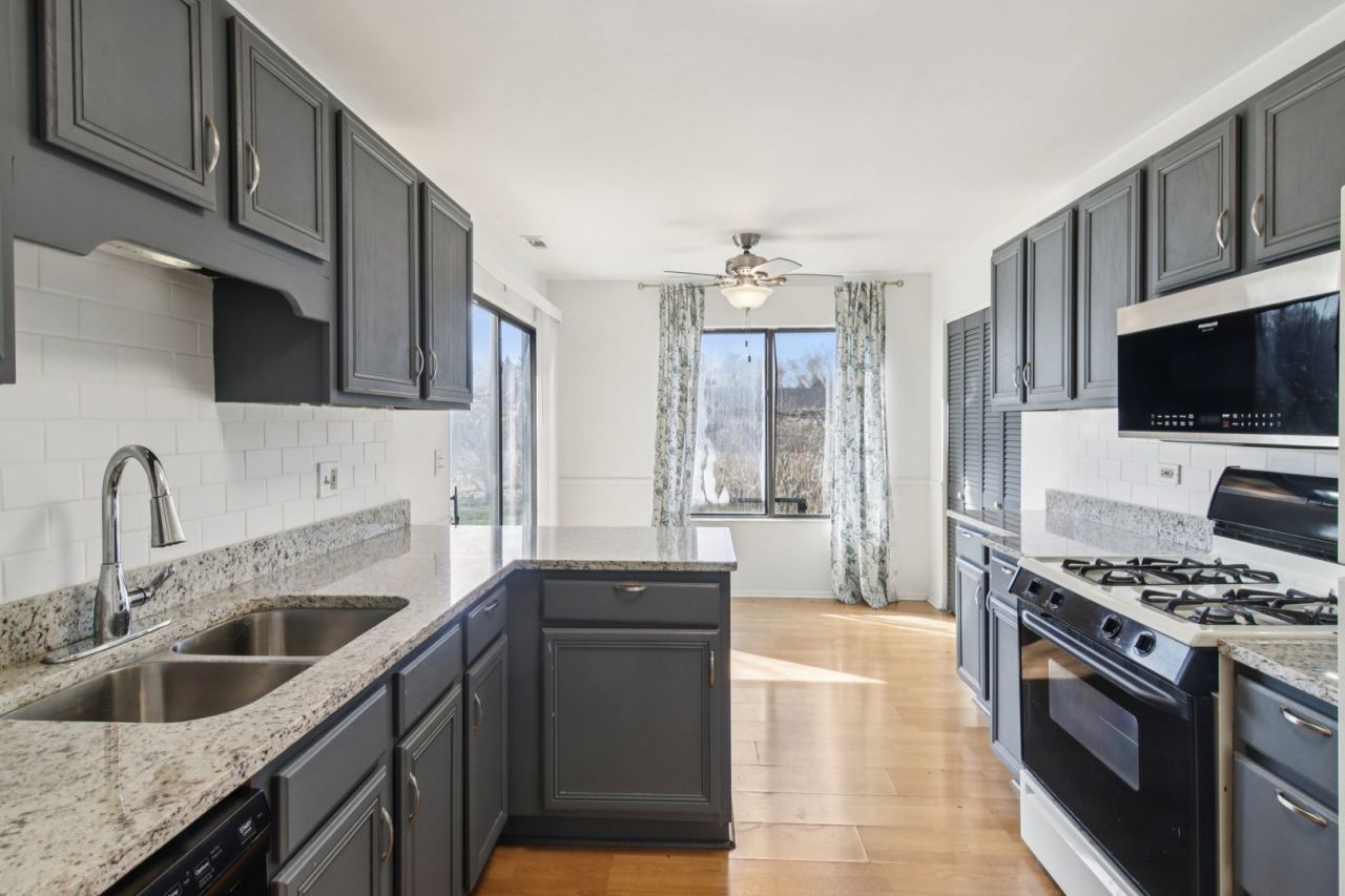Fantastic opportunity to own a first-floor home in the desirable Trails Village subdivision in the heart of Roselle. Being south facing, it is flooded with an abundance of natural light and offers a spacious layout with an updated eat-in kitchen, newly painted cabinets and granite countertops. The adjacent family room offers easy access to your private outdoor living space, which provides a secluded and peaceful setting. The primary bedroom includes an ensuite bathroom while a second bedroom offers ample closet space and access to a full shared bath. Additional highlights include a convenient in-unit washer and dryer, a one-car garage and it's investor-friendly. Ideally located near commuter trains, shopping, dining, and offering easy access to major highways. Schedule your tour today!